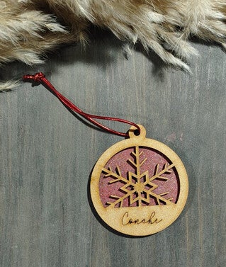 Bola de Navidad en madera MDF, doble capa, grosor total 6mm. Pintada en color a escoger. Personalizable.